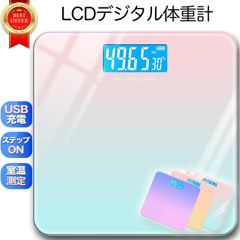 体重計 50g単位 測定 バックライト付 高精度 おしゃれ かわいい 室温表示 バッテリー表示 オートオフ デジタル USB充電 ヘルスメーター 乗るだけ 電源自動