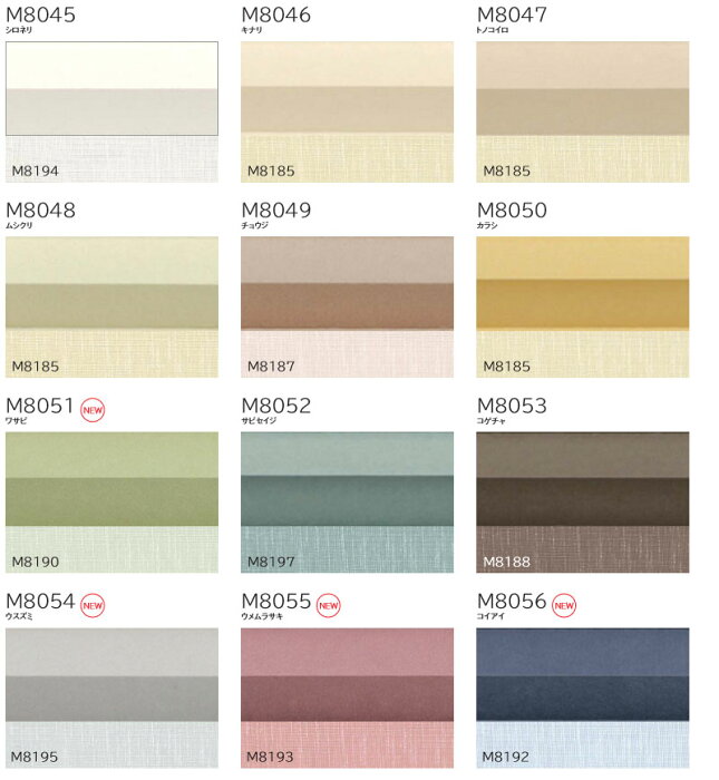 和紙調 プリーツスクリーン もなみ なごみII M8045〜8056蝋紙(ろうし)を思わせる独特の質感。