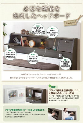 照明・サイドテーブル・コンセント・収納…これ1台にすべてお任せ! フラップ棚・照明・コンセントつき多機能ベッド。