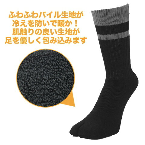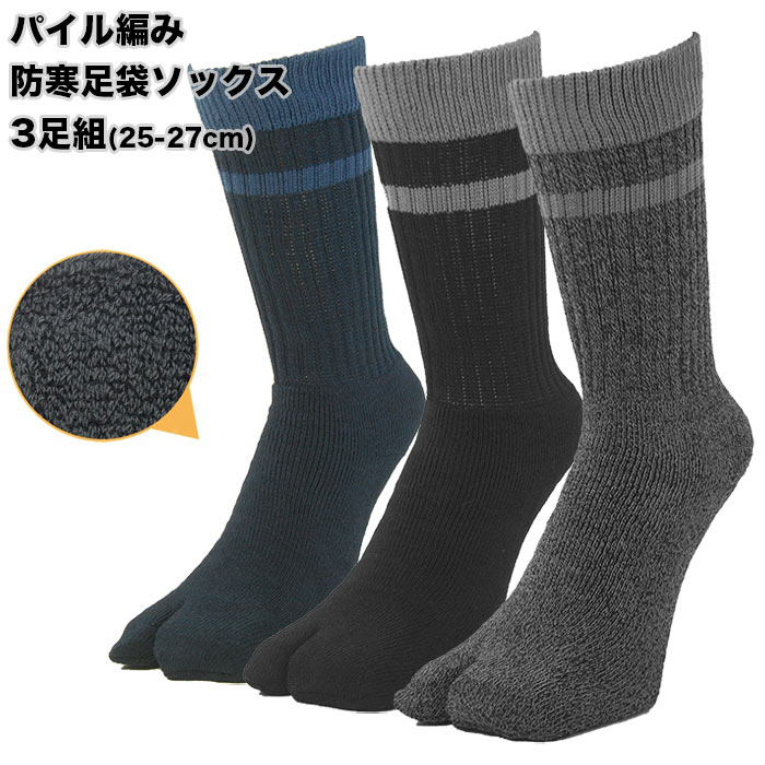 靴下 メンズ 暖かい 足袋の防寒パイル 指付きソックス 3色セット (25-27cm)