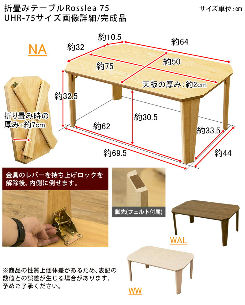 ▼検索ワード 新生活 一人暮らし 来客 家具 白 ホワイト 茶 ブラウン クリーム ナチュラル 低い フリーテーブル 低め 幅 高さ 奥行 約 30cm 35cm 50cm 70cm 75cm 750mm 7cm 折れ脚 軽量 ワンタッチ 2人用 少人数 組み立て不要 完成品 天然木化粧繊維板 アッシュ ウォールナット ラバーウッド 突板 ラッカー塗装 傷がつきにくい 和室 片付け 作業台商品番号 UHR-75 商品説明 完成品 使わない時は簡単ささっとコンパクト♪