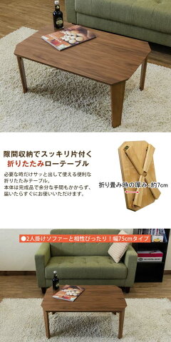 ○カラー:ナチュラル(NA) ウォールナット(WAL) ○サイズ:(W)幅75cm×(D)奥行き50cm×(H)高さ32.5cm 天板厚:約20mm 折りたたみ時の厚み:約7cm ○素材:天板:天然木化粧繊維板・(NA)アッシュ突板ラッカー塗装 (WAL)ウォールナット突板ラッカー塗装 脚:ラバーウッド(ラッカー塗装) ○重量:6.3kg ○完成品 ※沖縄配送不可★