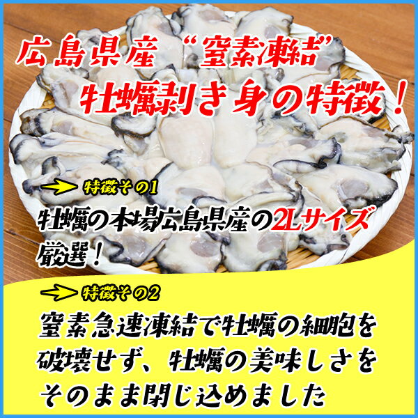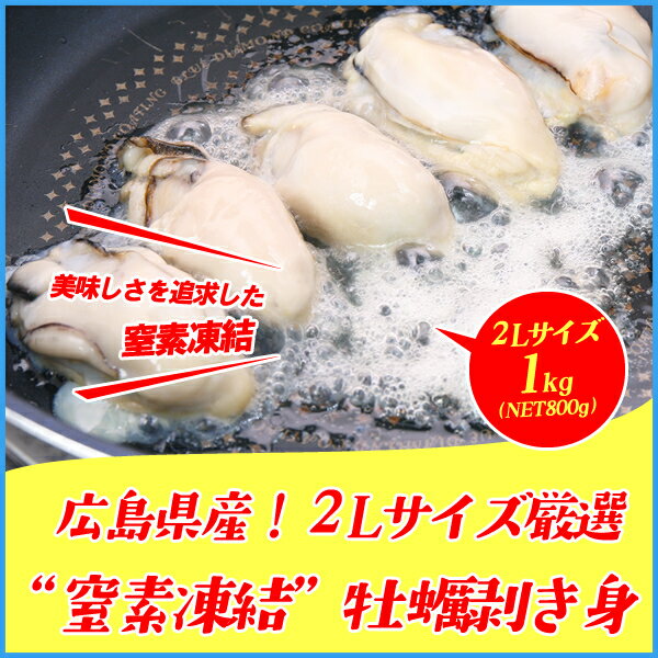 広島県産“窒素凍結”牡蠣むき身 1kg(NET800g) 大粒2Lサイズ 冷粒 カキ かき 冷凍食品 惣菜