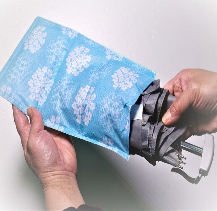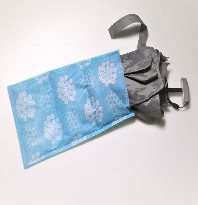 【乾燥剤でできた雨に濡れた傘の収納用袋】*折りたたみ傘専用です*(機能)片面にシリカゲル60g入り(1回の吸湿吸水量約40ml)・片面シリカゲルと抗菌剤のラミネート不織布素材でできています。