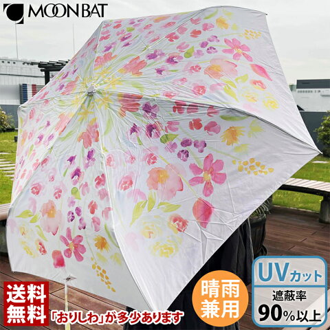 訳あり特価 折りたたみ傘 3段 水彩花束 軽量 晴雨兼用 傘 折りたたみ 折り畳み 雨傘 日傘 UV加工 紫外線防止 レディース 55cm 収納袋付き estaa エスタ 花束 レッド ムーンバット MOONBAT