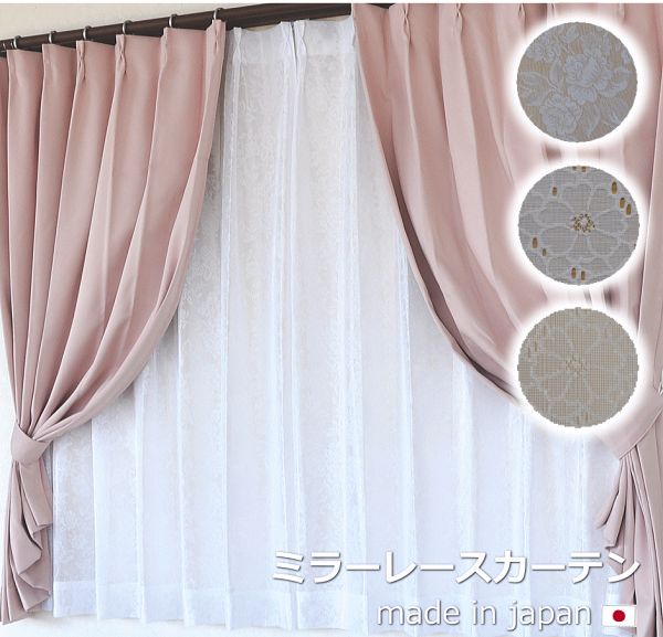 組成 ポリエステル100% 洗濯機で洗えます 機能 ミラーレース UVカット 縫製仕様 1.5倍ヒダ 2つ山 アジャスターフック (Aフック) 日本製