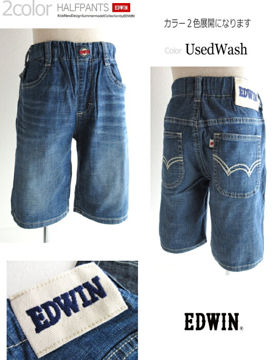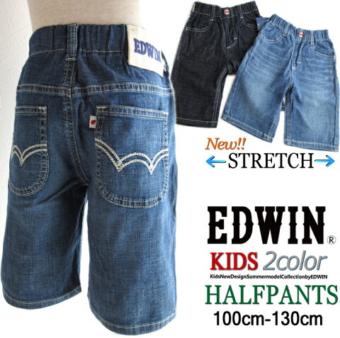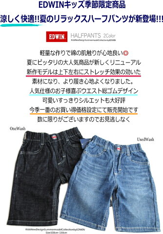 (在庫限りSALE) EDWIN キッズ ハーフ 数限定 今季1番のお買得 可愛い 涼しい ハイパワー ストレッチ 軽量 丈夫 リラックス イージー パンツ らくらくノーストレス 総ゴム デニムパンツ 快適 短パン 【2色展開】Used OneWash ETS03S ( 100 110 120 130cm)エドウイン