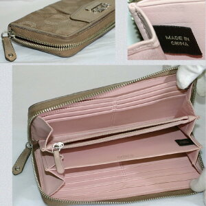 【中古】本物可コーチ女性用薄いカーキ色大きいシグネチャー模様20cmラウンドファスナー長財布 ○C11-216-2