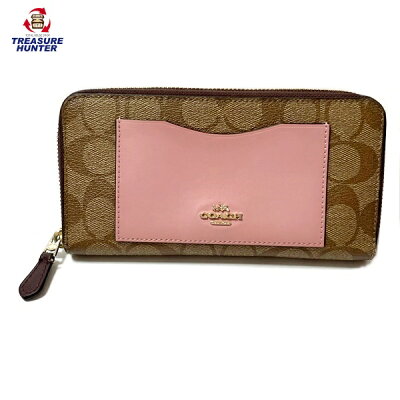 【中古】コーチ カラーブロック シグネチャー アコーディオン ジップアラウンド ラウンドファスナー 長財布 F57318 ピンク系 PVC レザー レディース ウォレット COACH 【052822】