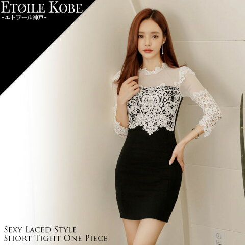 TEL:078-631-4747(平日10:00-17:00) 【セクシードレス】【結婚式/二次会/パーティー】【5分/7分袖】商品番号 ks3-4432 サイズ(cm)※B/W/Hは推奨サイズ ■S着丈:85 / 肩幅:34 / 袖丈:44 / B:78-84 / W:60-65 / H:78-83■M着丈:86 / 肩幅:35 / 袖丈:45 / B:82-88 / W:64-69 / H:82-87■L着丈:87 / 肩幅:36 / 袖丈:46 / B:86-92 / W:68-73 / H:86-91■LL(XL)着丈:88 / 肩幅:37 / 袖丈:47 / B:90-96 / W:72-77 / H:90-95 カラー ブラック×ホワイト 素材 / 伸縮性 ポリエステル / 伸縮性:中 裏地 裏地あり モデル身長 166cm/S着 詳細 シースルーレース刺繍が大人の魅力を最大限に引き出し、セレブ感とラグジュアリーさを追求した、ショート丈のタイトワンピースです。