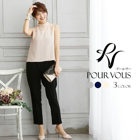 商品仕様 ◆素材 <トップス> 表地:ポリエステル100% レース部分:ナイロン100% <パンツ> ポリエステル100% ◆伸縮性:ややあり ◆裏地:あり(ポリエステル100%) ◆ファスナー:トップスのみあり(背面) ※美しいシルエット・デザイン性を重視するため、コンシールファスナーを使用しています。
