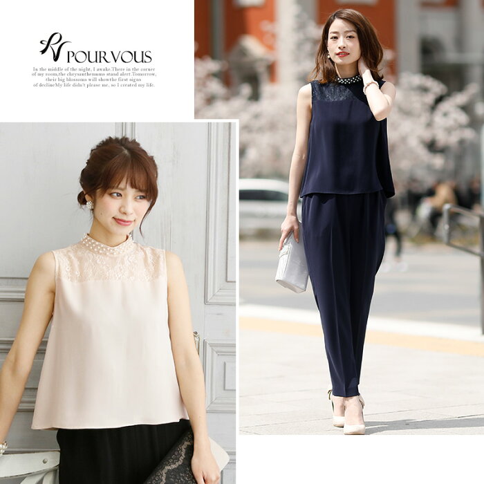 この一着でしっかり決まる華やかさ ------------------------------------------------------------ パールをあしらった華やかなハイネックと、デコルテレースでネックレスいらず! ハイネックはボタンで取り外しが可能です。