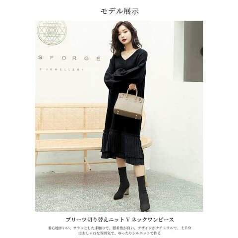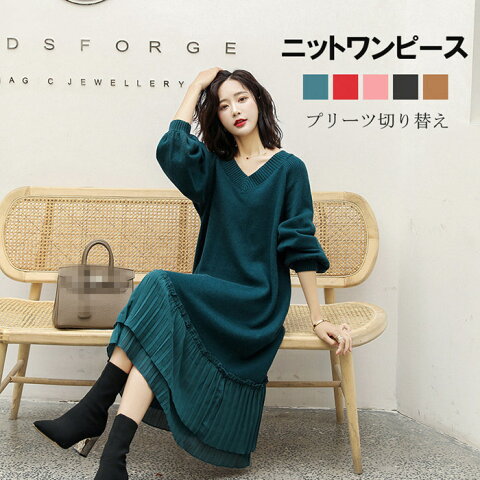 ニットワンピース ロングワンピース 切り替え プリーツ マキシワンピース セーターワンピース レディース Vネックワンピ タイトワンピース フレア 長袖 大人可愛い通勤ワンピース 結婚式ワンピース 二次会 お呼ばれ OL オフィス 春秋冬 仕事 参観日 発表会 20代30代40代50代