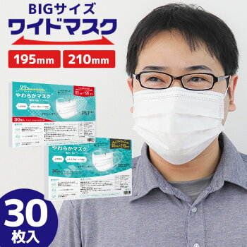 【数量限定価格】【送料無料】【99%カット】マスク 不織布 大きめ 不織布マスク 超大きいサイズ 195mm 210mm 男性用マスク 大顔専用マスク メンズサイズマスク マスク大きめ 使い捨てマスク 30枚 3層構造 平ゴム 耳が痛くならない 白 ホワイト ウイルス 飛沫防止 送料無料